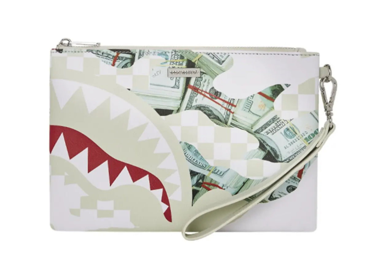 Pouch with removable wristlet strap, Handle on front panel, Zip Closure, secret stash pocket on side seam