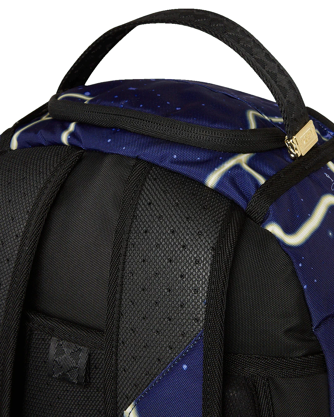 Dimensions: 18" x 6" x 11.5" • Front zipper pocket • Side pockets • Zippered Stash pocket • Separate velour sunglass compartment • Ergonomic mesh back padding • Adjustable Straps for custom sizing • Gold zippers with metal hardware • Metal "Sprayground Authentic" badge • Slide through back sleeve connects to carry-on luggage to free your hands